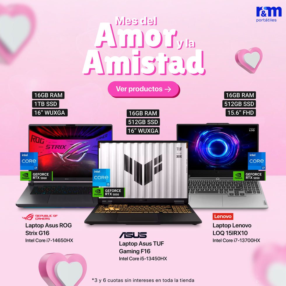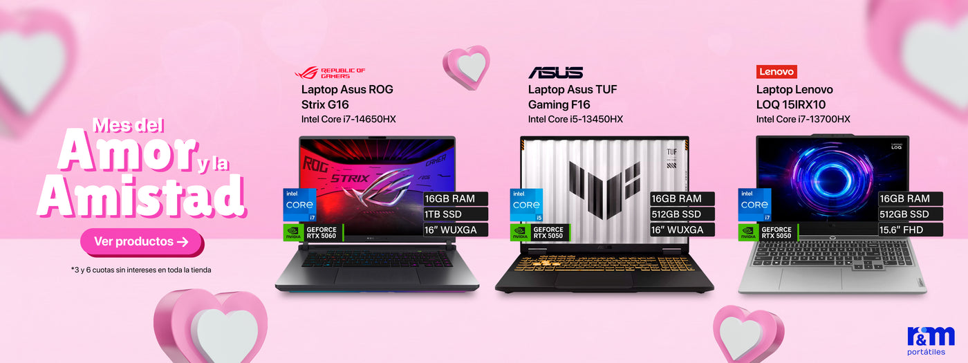 Si buscas comprar laptops gamer al mejor precio, en RYM Portátiles tenemos lo que necesitas. Equipos con procesadores potentes, tarjetas gráficas dedicadas y sistemas de refrigeración ideales para gaming exigente. Trabajamos con marcas reconocidas como ASUS, MSI y Acer, asegurando rendimiento y durabilidad. Además, ofrecemos opciones de pago en cuotas sin intereses y asesoría personalizada.