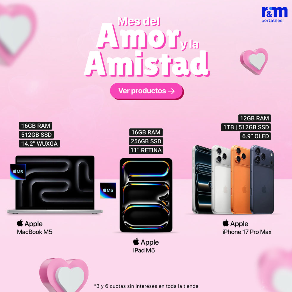 En RYM Portátiles encuentras los mejores productos Apple en oferta, incluyendo MacBook, iPad, iMac y accesorios originales. Trabajamos con distribuidores autorizados para garantizar productos 100% originales, con garantía vigente y precios atractivos. Ya sea para uso profesional o personal, tenemos la opción ideal para ti. Aprovecha nuestras promociones y haz tu compra Apple con total confianza.
